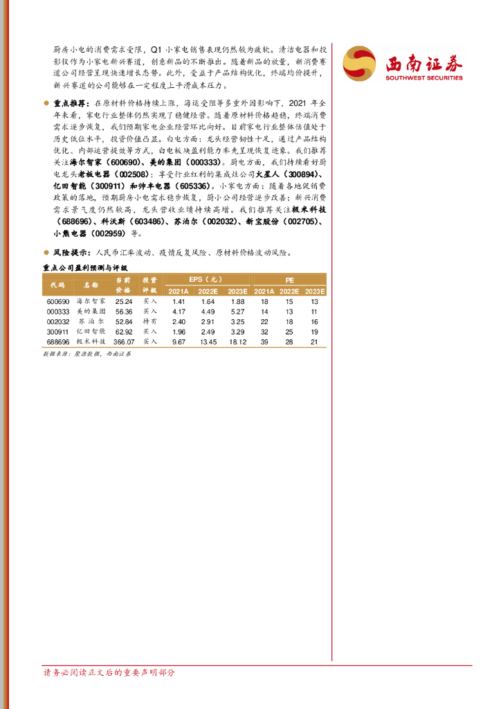 西南证券:家电行业2021年报及2022一季报总结:春暖花开,经营向好.pdf