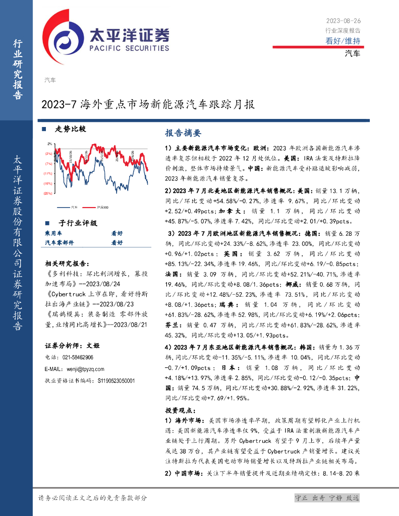 太平洋证券:汽车行业深度报告:2023-7海外重点市场新能源汽车跟踪月报.pdf