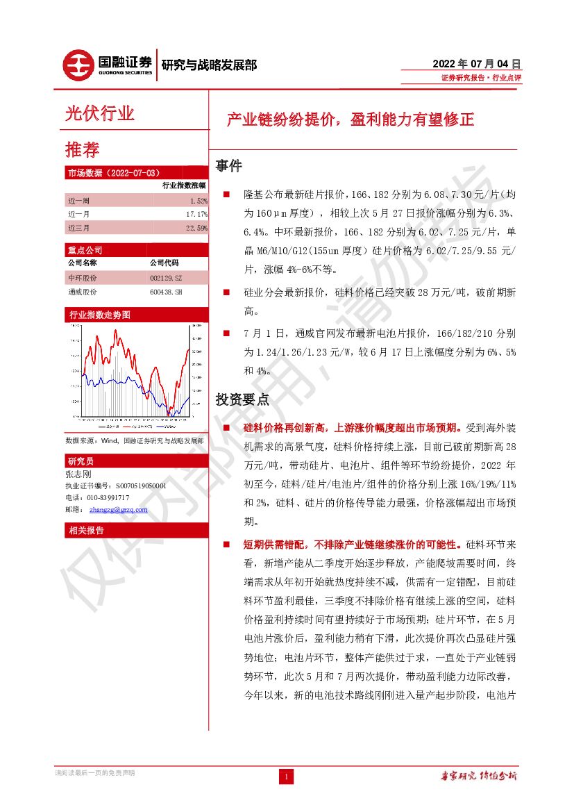 国融证券:光伏行业点评:产业链纷纷提价,盈利能力有望修正.pdf