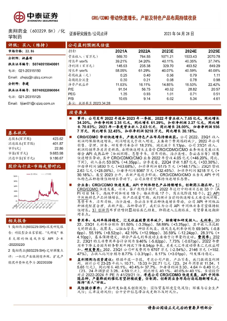 中泰证券:奥翔药业(603229)-CRO/CDMO带动快速增长,产能及特色产品布局持续收获.pdf