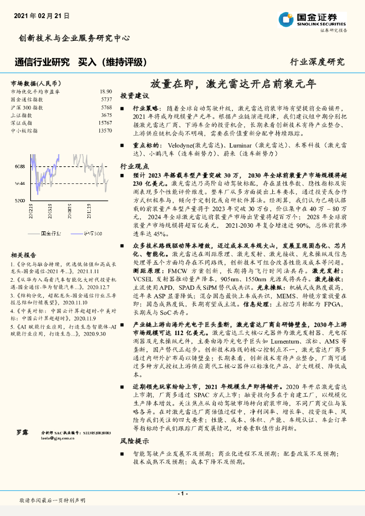 国金证券:通信行业研究:放量在即,激光雷达开启前装元年.pdf