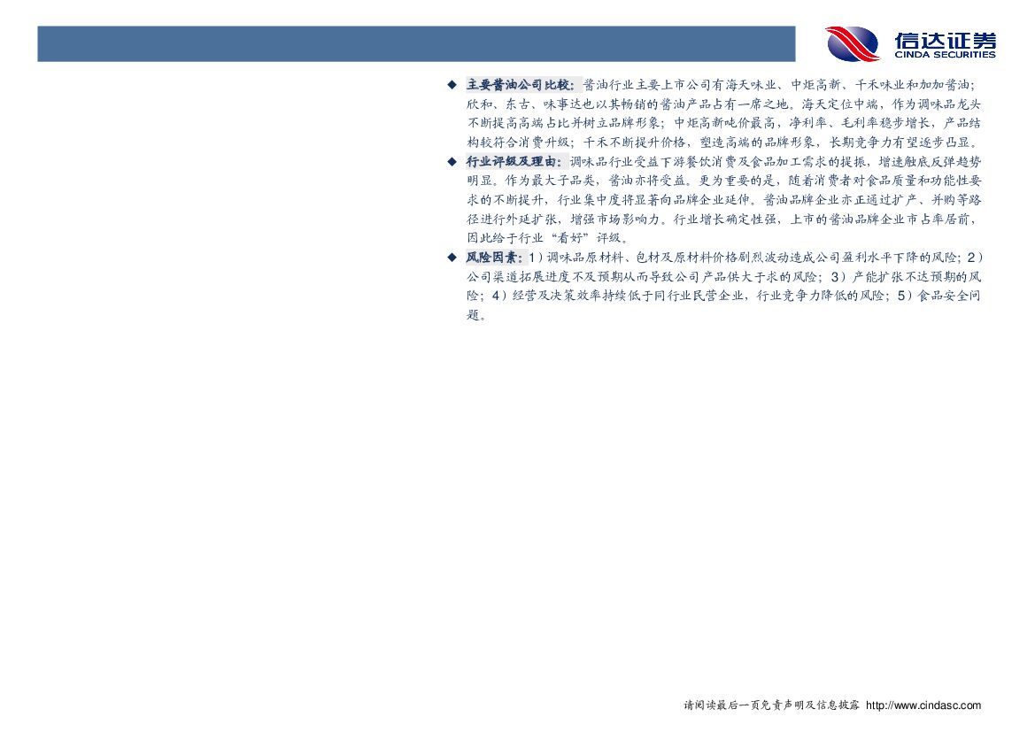 信达证券:调味品行业报告:酱油篇-酱油行业四大发展趋势及行业内企业对比.pdf