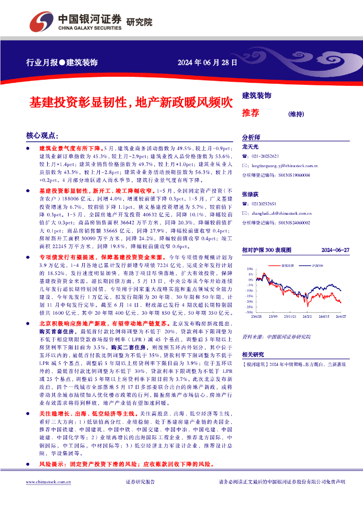 中国银河:建筑装饰行业月报:基建投资彰显韧性,地产新政暖风频吹.pdf