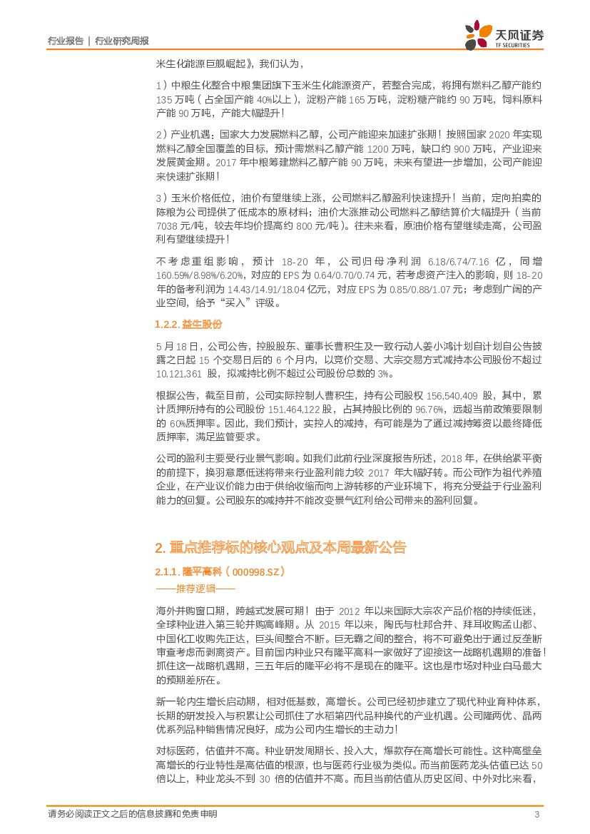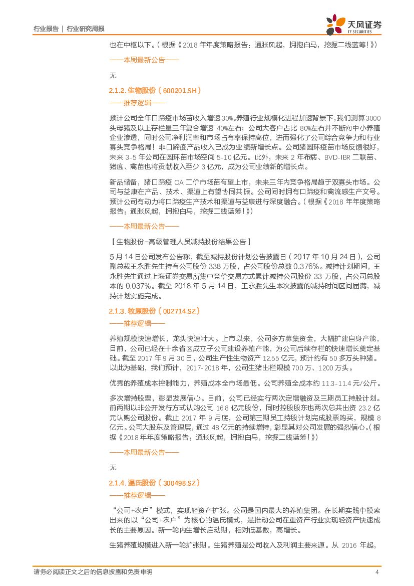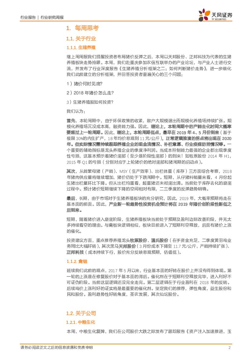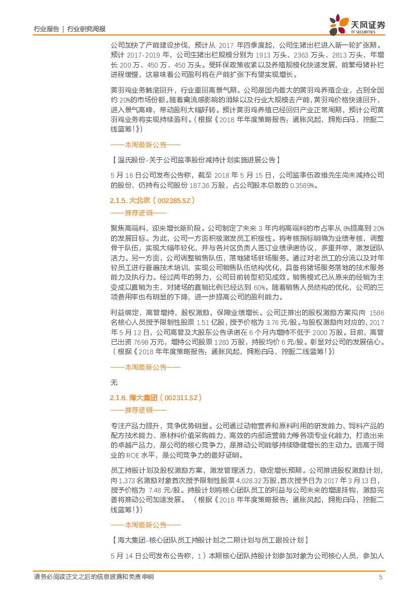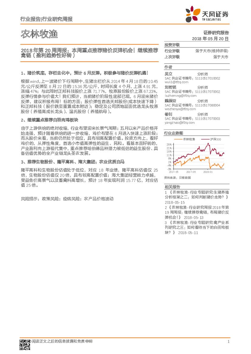 天风证券:农林牧渔2018年第20周周报:本周重点推荐猪价反弹机会!继续推荐禽链(盈利趋势性好转).pdf