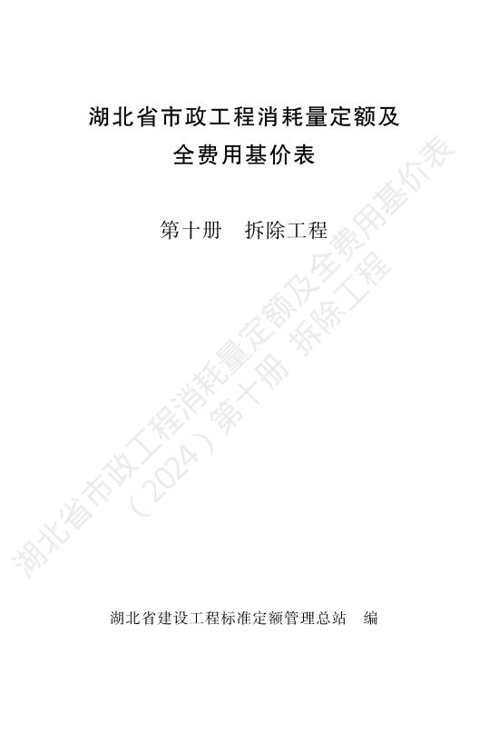 湖北省市政工程消耗量定额及全费用基价表(2024)第十册 拆除工程.pdf