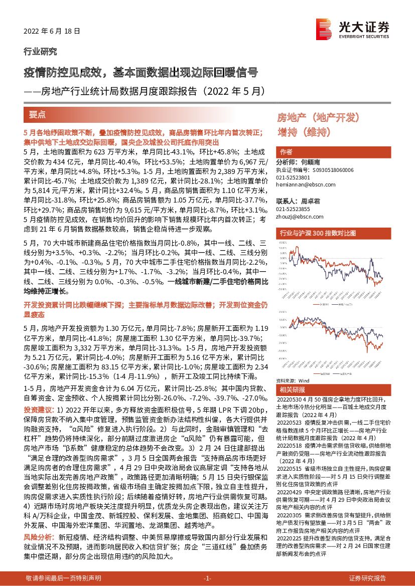 光大证券:房地产行业统计局数据月度跟踪报告(2022年5月):疫情防控见成效,基本面数据出现边际回暖信号.pdf
