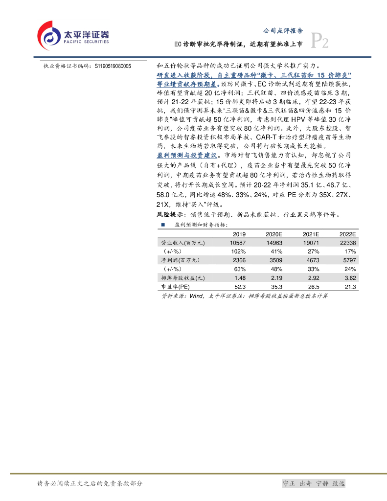 太平洋证券:智飞生物(300122)-EC诊断审批完毕待制证,近期有望批准上市.pdf
