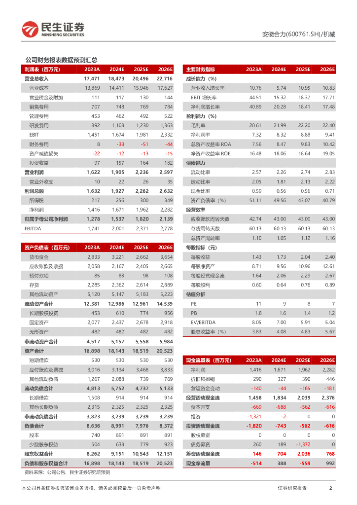 民生证券:安徽合力(600761)-2024年中报点评:出口+锂电化持续发力,毛利率继续提升.pdf