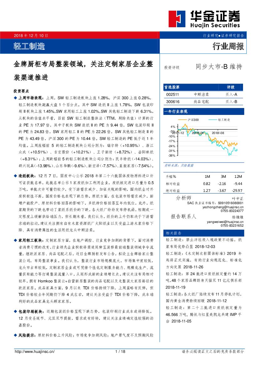 华金证券:轻工制造行业周报:金牌厨柜布局整装领域,关注定制家居企业整装渠道推进.pdf