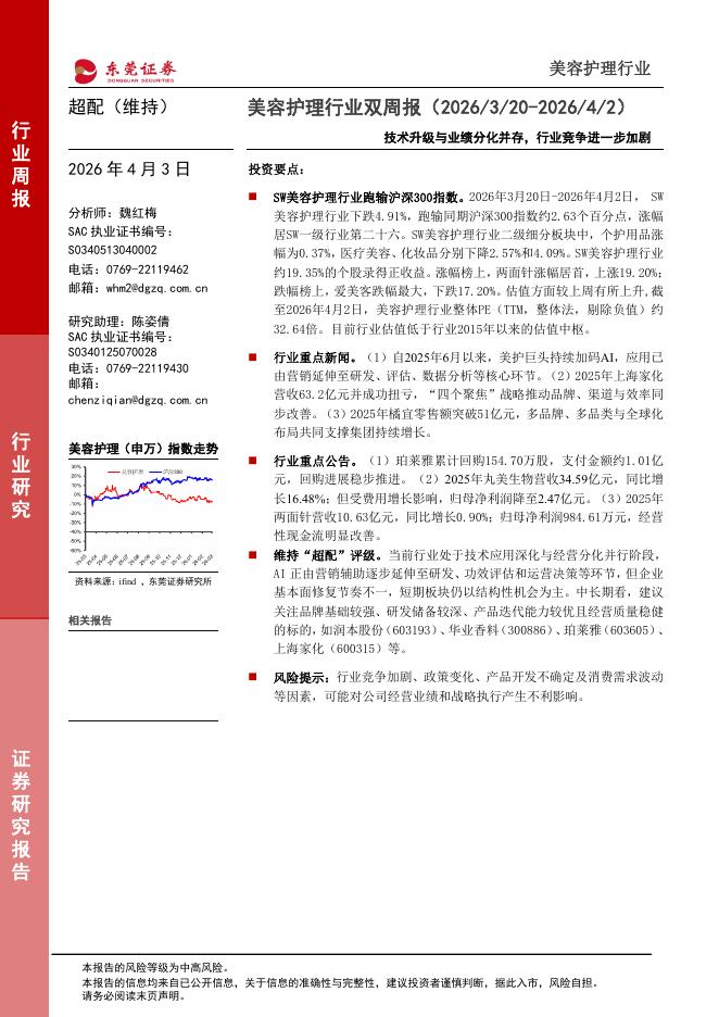 东莞证券:美容护理行业双周报:技术升级与业绩分化并存,行业竞争进一步加剧.pdf