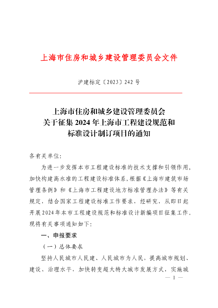 上海市住建委:关于征集2024年上海市工程建设规范和标准设计制订项目的通知.pdf