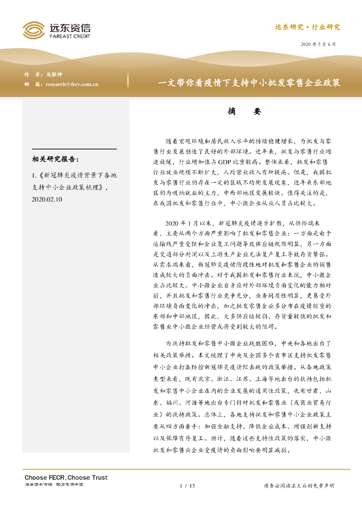 远东资信: 一文带你看疫情下支持中小批发零售企业政策.pdf