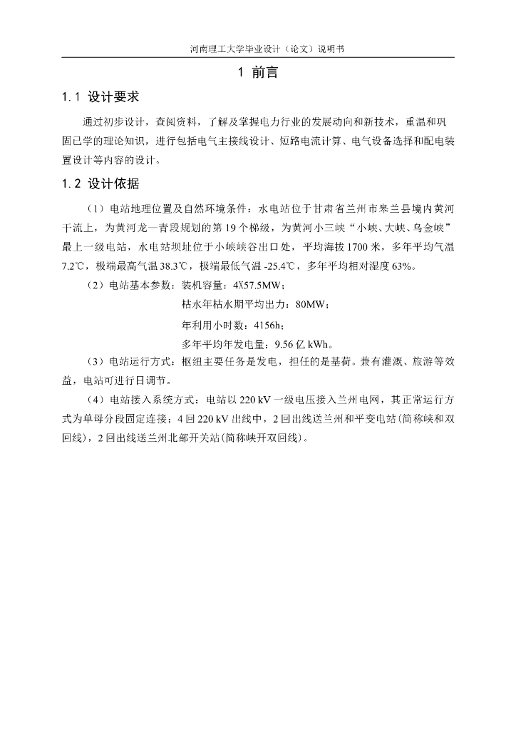 水电站电气主接线毕业设计论文(Word).doc