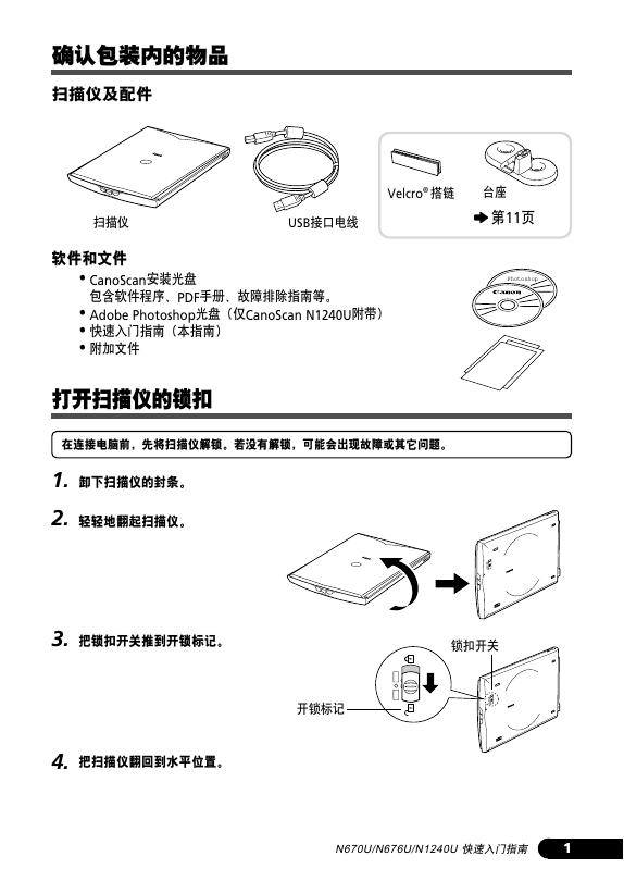 佳能彩色图像扫描仪 CanoScan N670U/N676U/N1240U 快速入门指南.pdf