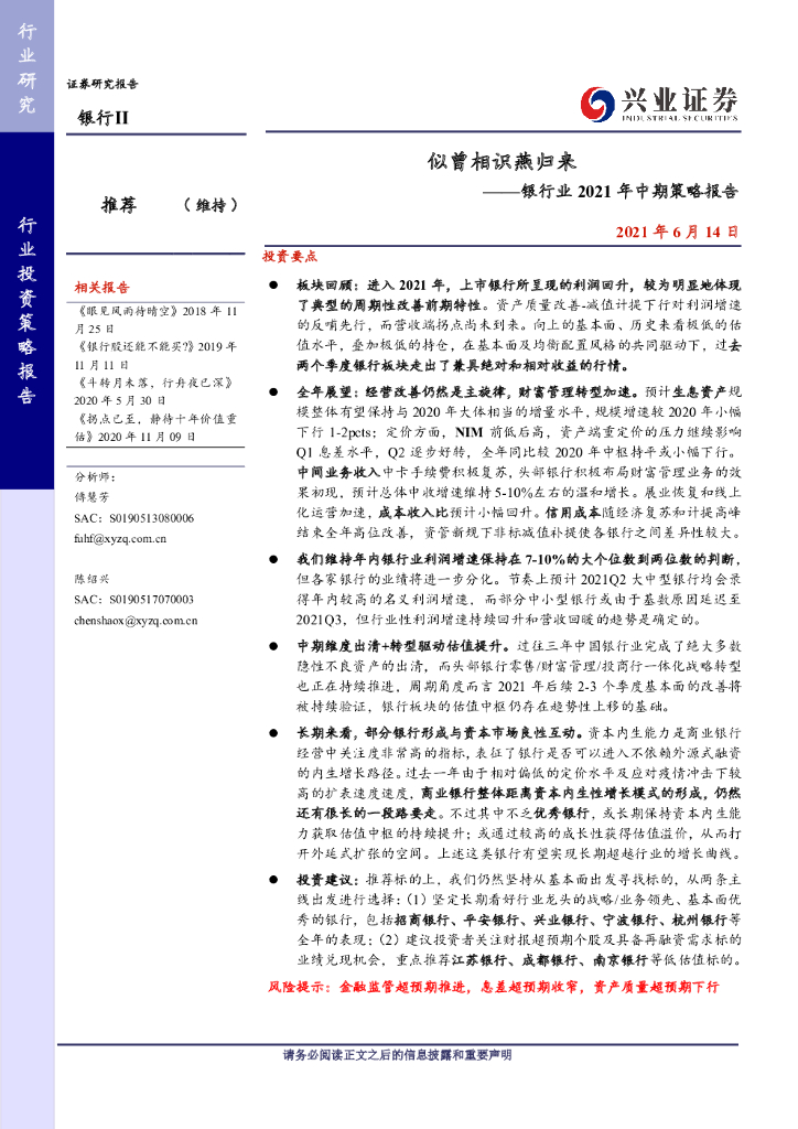 兴业证券:似曾相识燕归来——银行业2021年中期策略报告.pdf