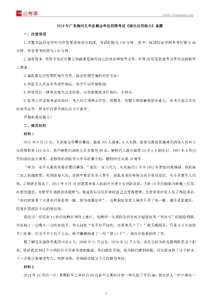 2019年广东梅州五华县事业单位招聘考试《综合应用能力》真题.pdf