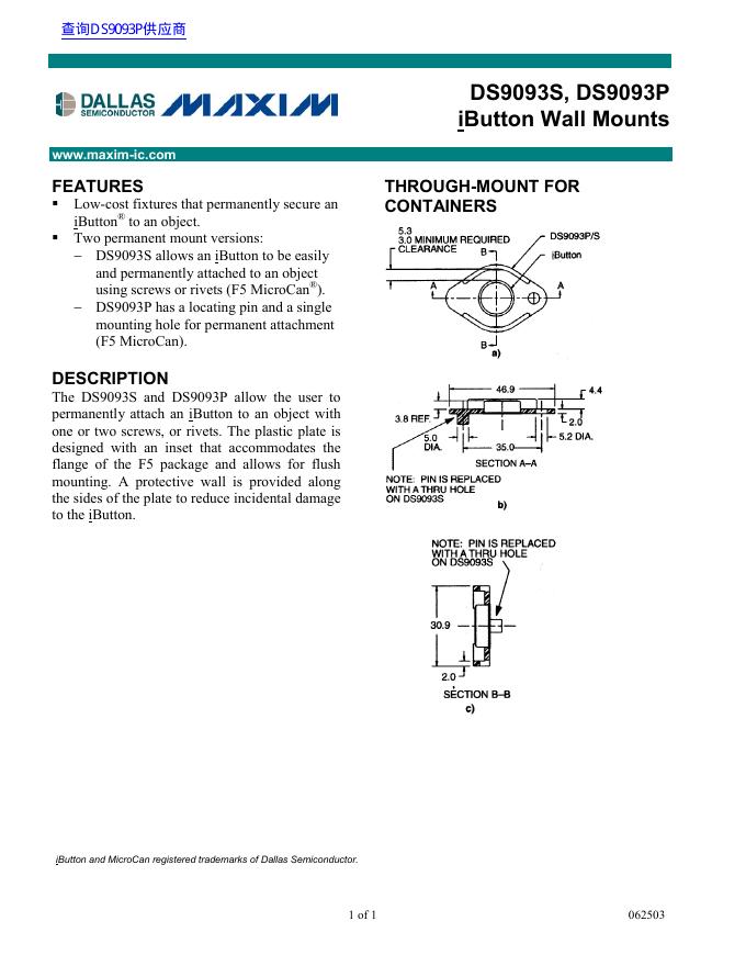 DALLAS DS9093S, DS9093P 数据手册.pdf