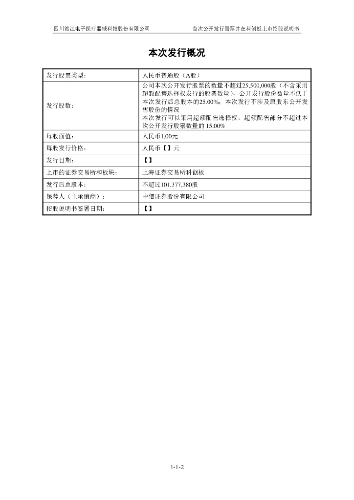 四川锦江电子医疗器械科技股份有限公司上交所科创板IPO上市招股说明书.pdf
