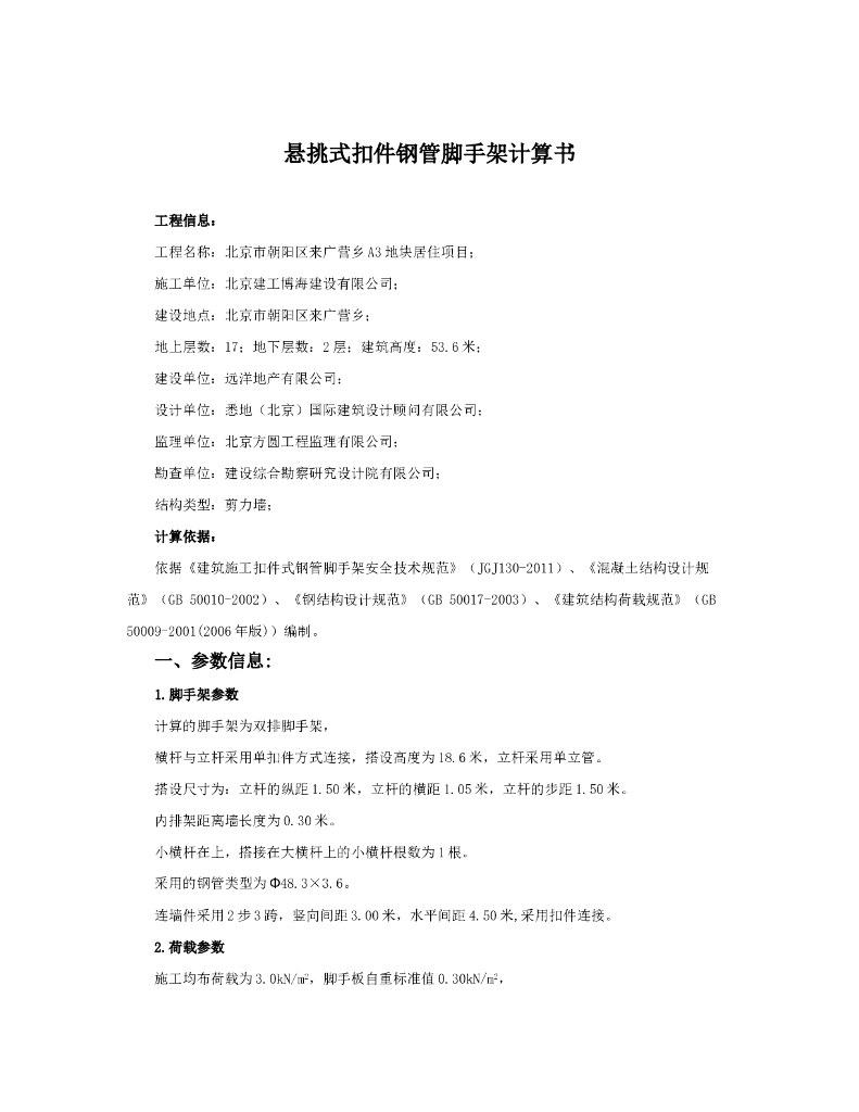 高层住宅楼工程悬挑脚手架带联梁计算书.doc