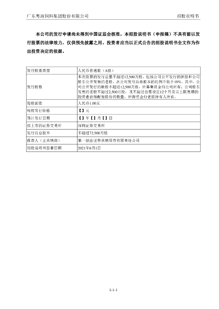 广东粤海饲料集团股份有限公司深交所主板IPO上市招股说明书.pdf