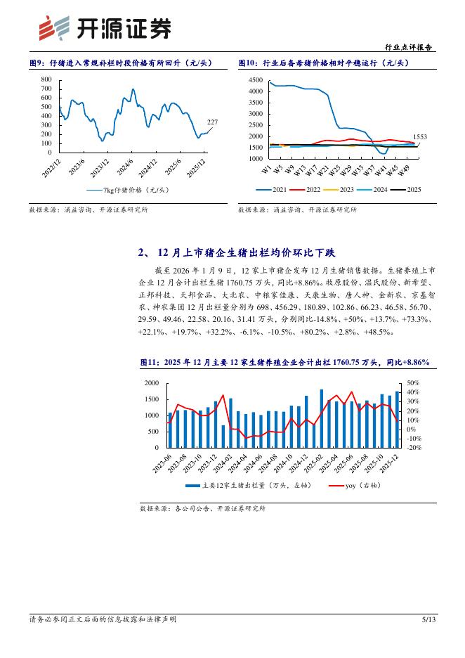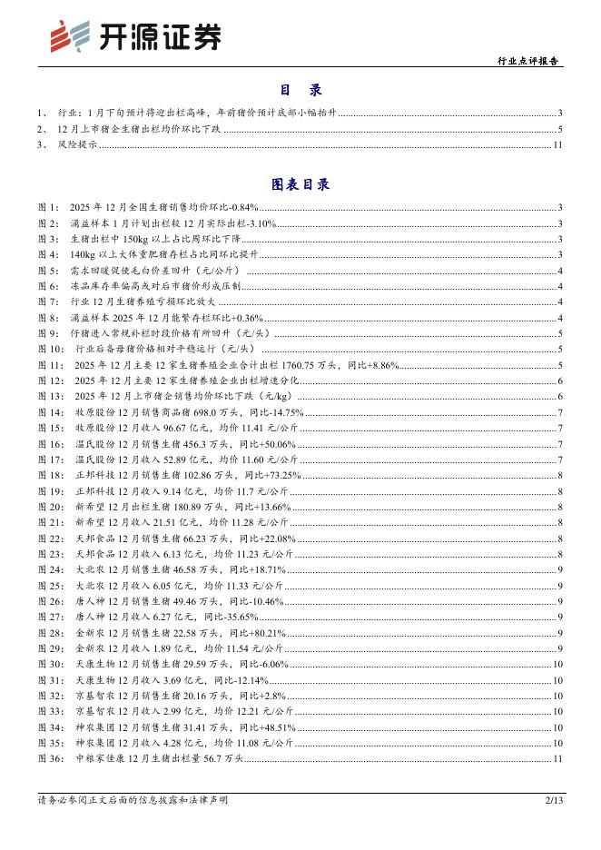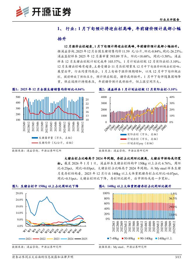 开源证券:农林牧渔行业点评报告:1月下旬预计将迎出栏高峰,年前猪价预计底部小幅抬升.pdf