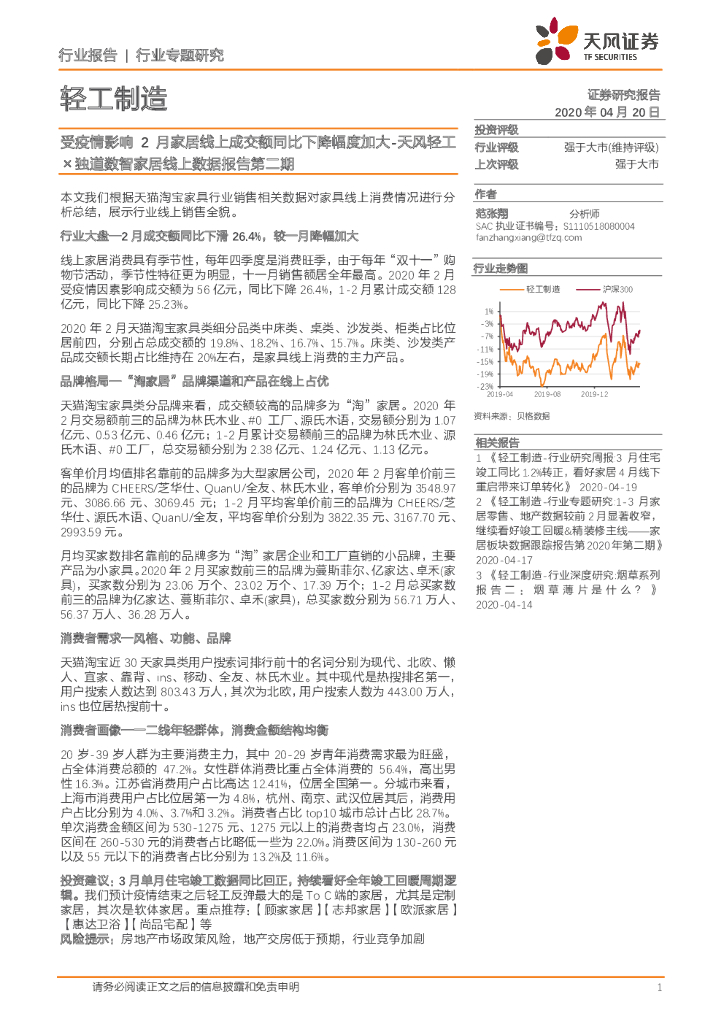 天风证券:轻工×独道数智家居线上数据报告第二期:受疫情影响2月家居线上成交额同比下降幅度加大.pdf