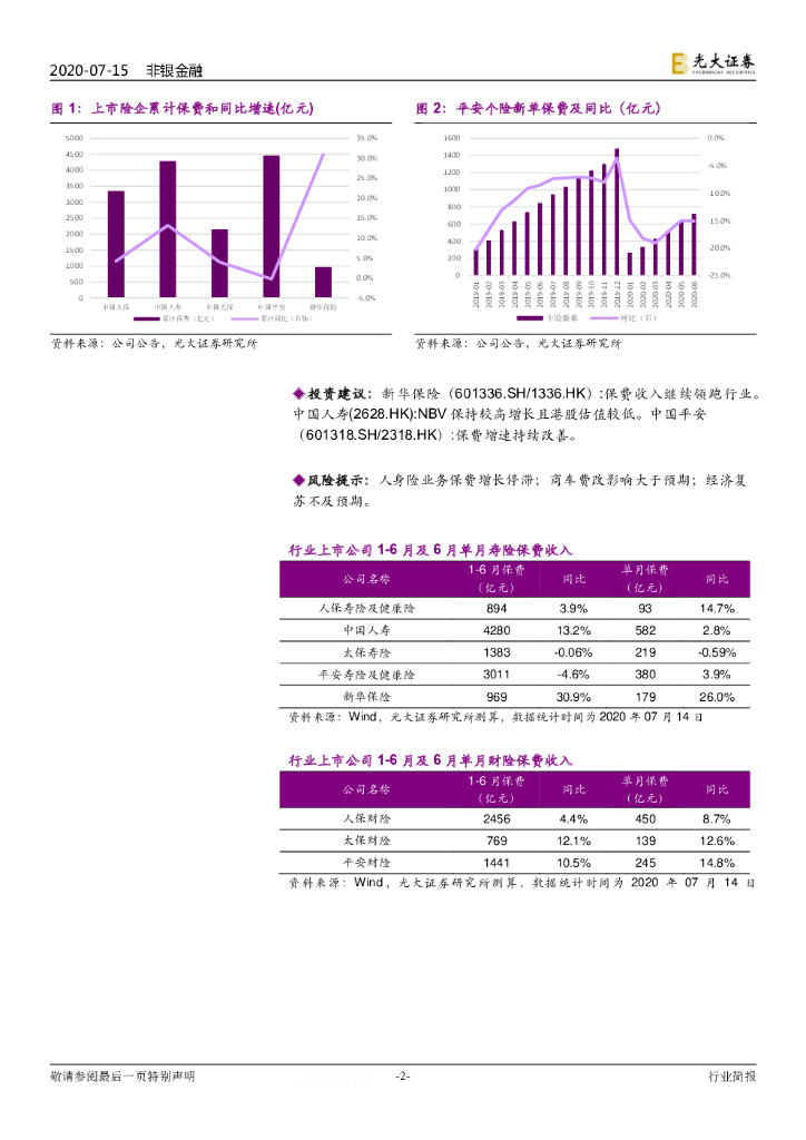 光大证券:2020年6月上市险企保费数据点评:寿险保费增速分化,财险打开向上空间.pdf