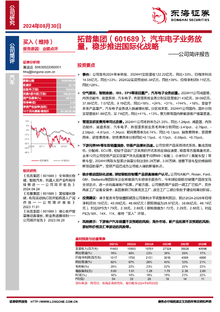 东海证券:拓普集团(601689)-公司简评报告:汽车电子业务放量,稳步推进国际化战略.pdf