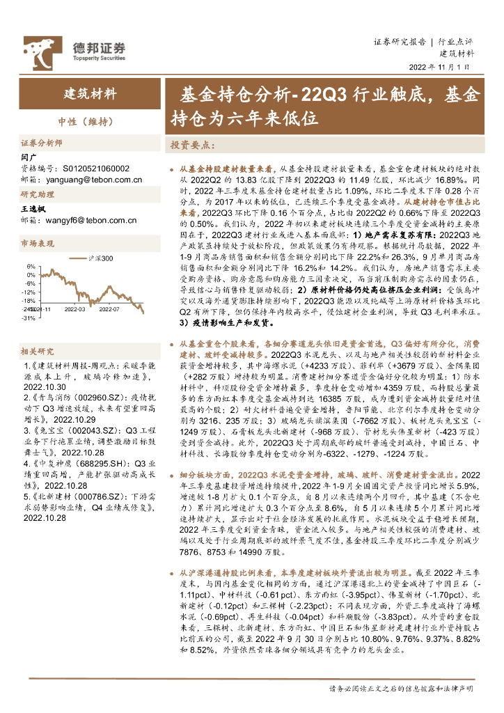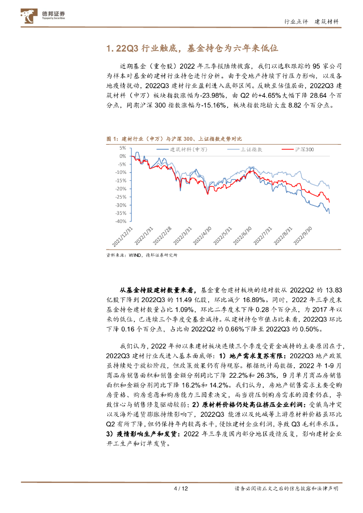 德邦证券:建筑材料:基金持仓分析:22Q3行业触底,基金持仓为六年来低位.pdf