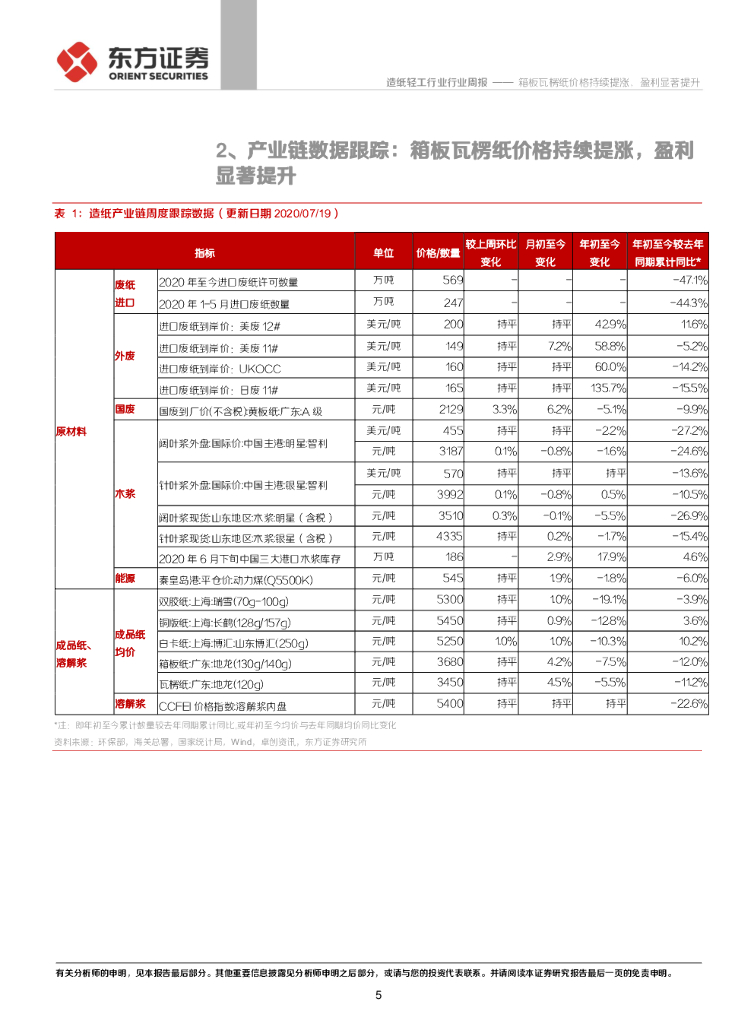 东方证券:造纸产业链数据每周速递:箱板瓦楞纸价格持续提涨,盈利显著提升.pdf