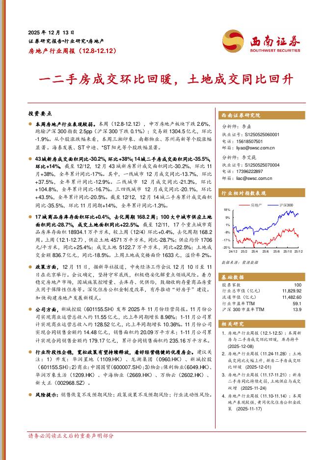 西南证券:房地产行业周报:一二手房成交环比回暖,土地成交同比回升.pdf
