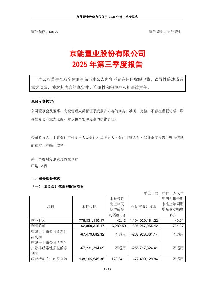 600791-京能置业:京能置业股份有限公司2025年第三季度报告.pdf