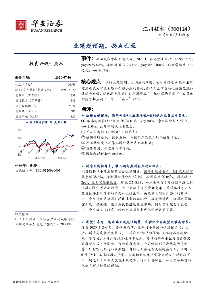 华安证券:汇川技术(300124)-业绩超预期,拐点已至.pdf