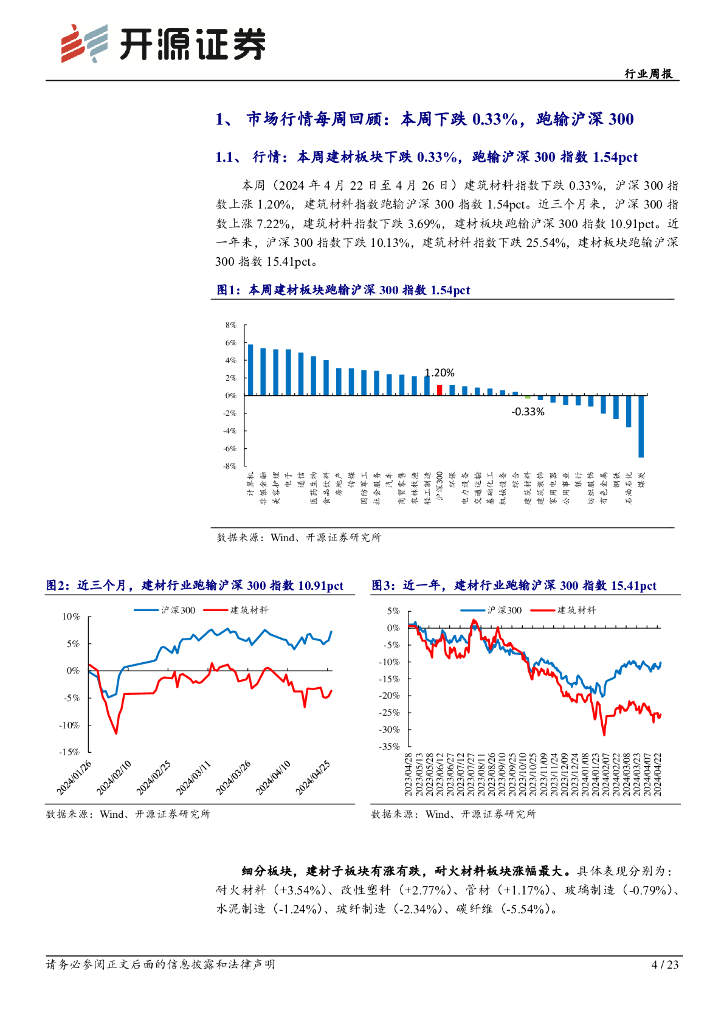 开源证券:建筑材料行业周报:2024Q1基金建材持仓减少,关注建材底部机会.pdf