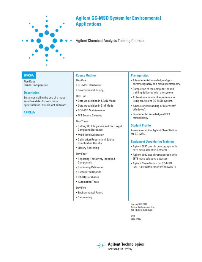 Agilent GC-MSD System for Environmental Applications (H4050A) 数据手册.pdf