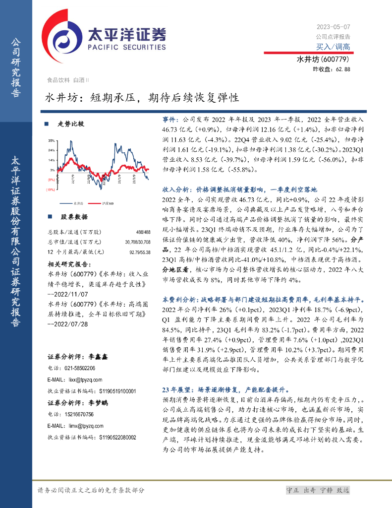 太平洋证券:水井坊:短期承压,期待后续恢复弹性.pdf