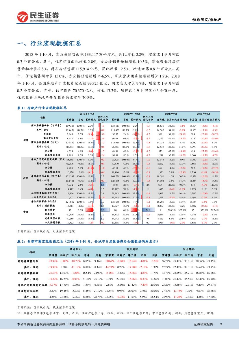 民生证券:2018年1-10月地产宏观数据点评:销售投资双双下行,调控成效初显.pdf
