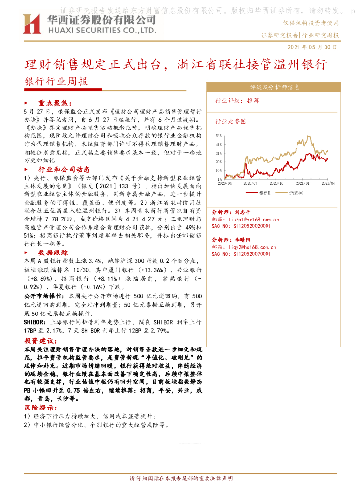 华西证券:银行行业周报:理财销售规定正式出台,浙江省联社接管温州银行.pdf