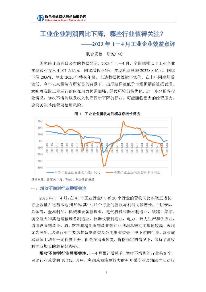 联合资信:规上工业企业利润同比下降,哪些行业值得关注?.pdf