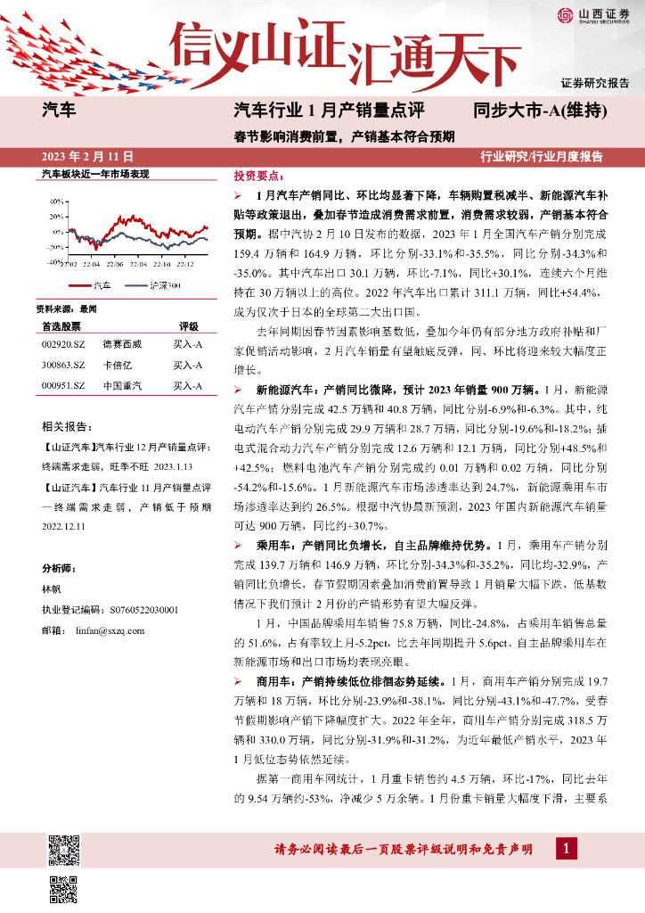 山西证券:汽车行业1月产销量点评:春节影响消费前置,产销基本符合预期.pdf