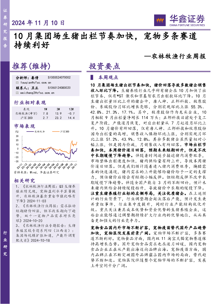 华鑫证券:农林牧渔行业周报:10月集团场生猪出栏节奏加快,宠物多条赛道持续利好.pdf