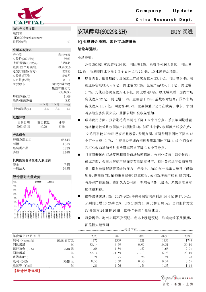 群益证券:安琪酵母(600298)-1Q业绩符合预期,国外市场高增长.pdf