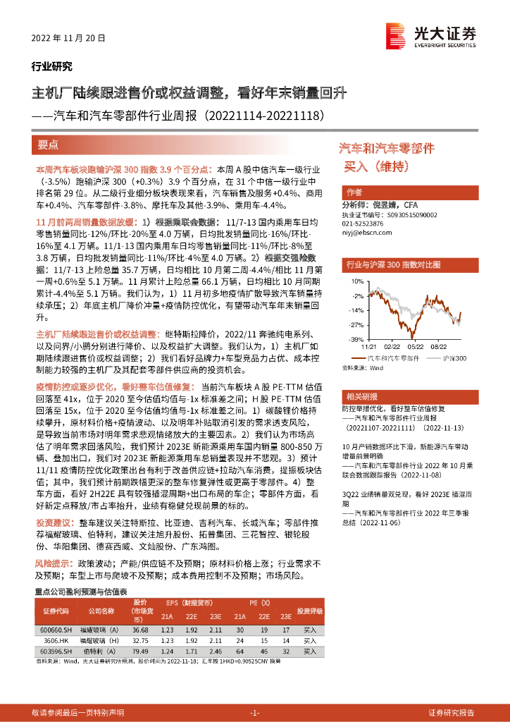 光大证券:汽车和汽车零部件行业周报:主机厂陆续跟进售价或权益调整,看好年末销量回升.pdf