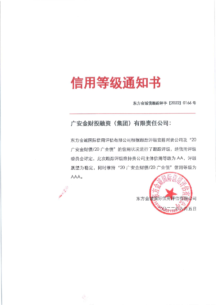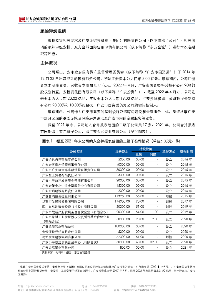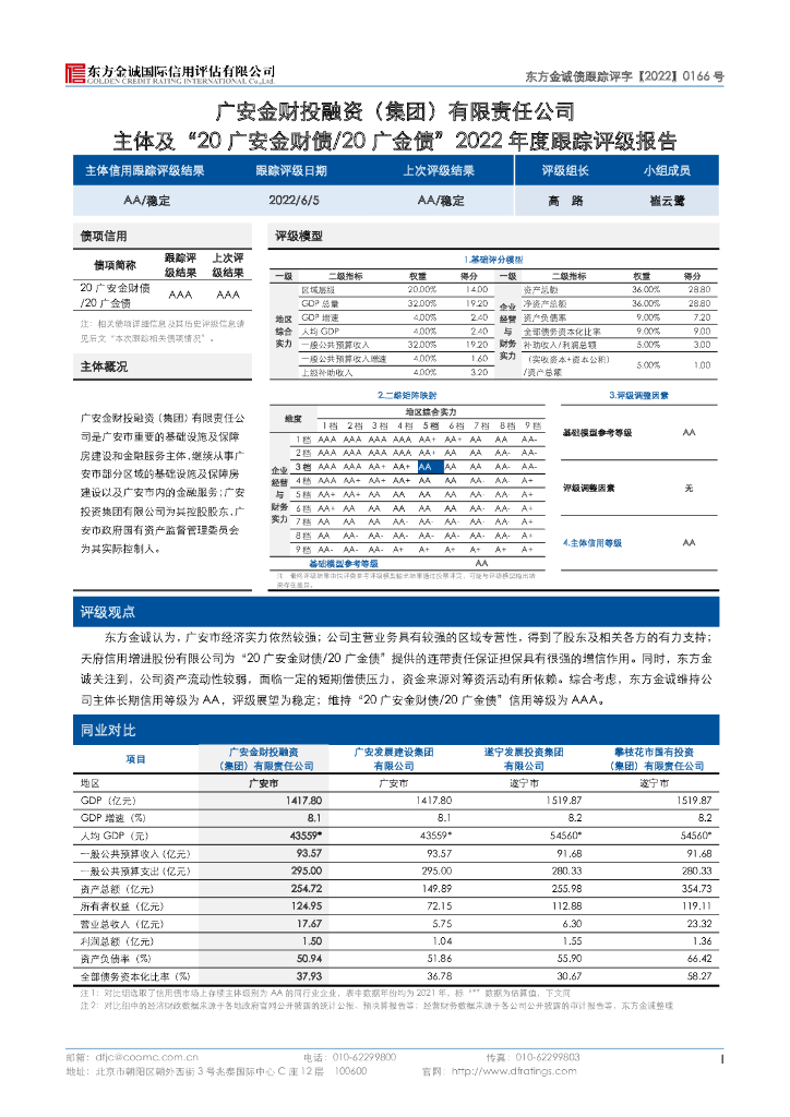 东方金诚:广安金财投融资(集团)有限责任公司主体及“20广安金财债20广金债”2022年度跟踪评级报告.pdf