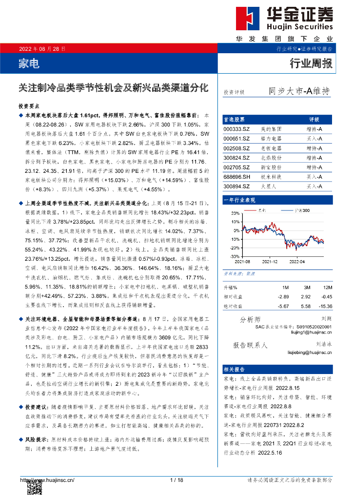 华金证券:家电行业周报:关注制冷品类季节性机会及新兴品类渠道分化.pdf