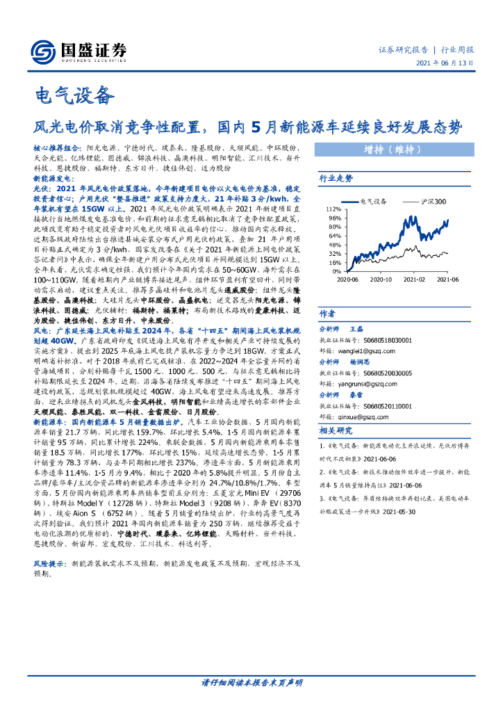 国盛证券:电气设备行业周报:风光电价取消竞争性配置,国内5月新能源车延续良好发展态势.pdf