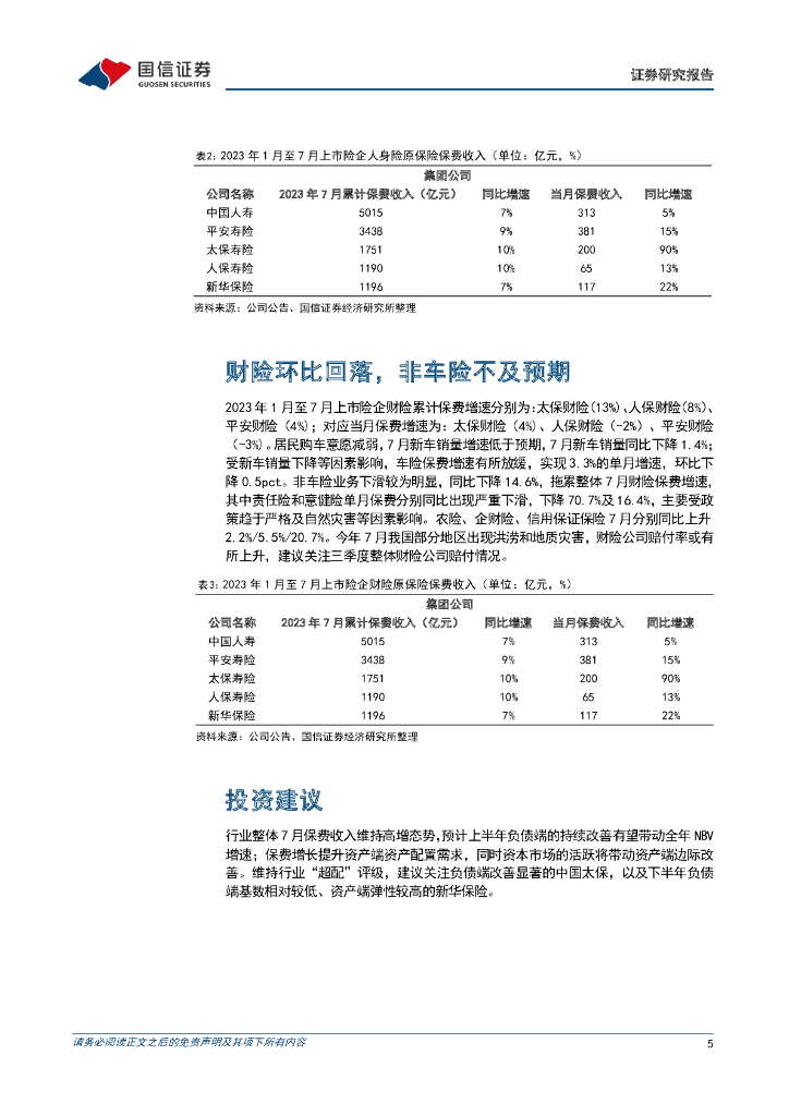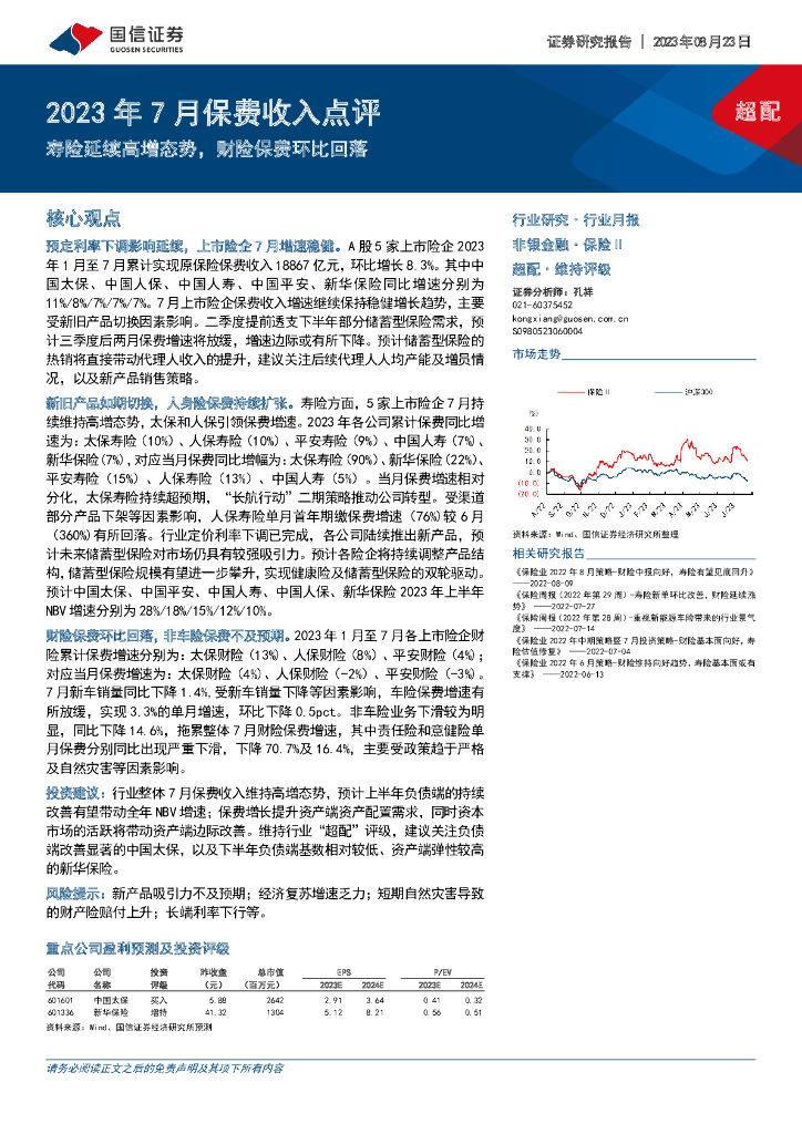 国信证券:2023年7月保费收入点评:寿险延续高增态势,财险保费环比回落.pdf