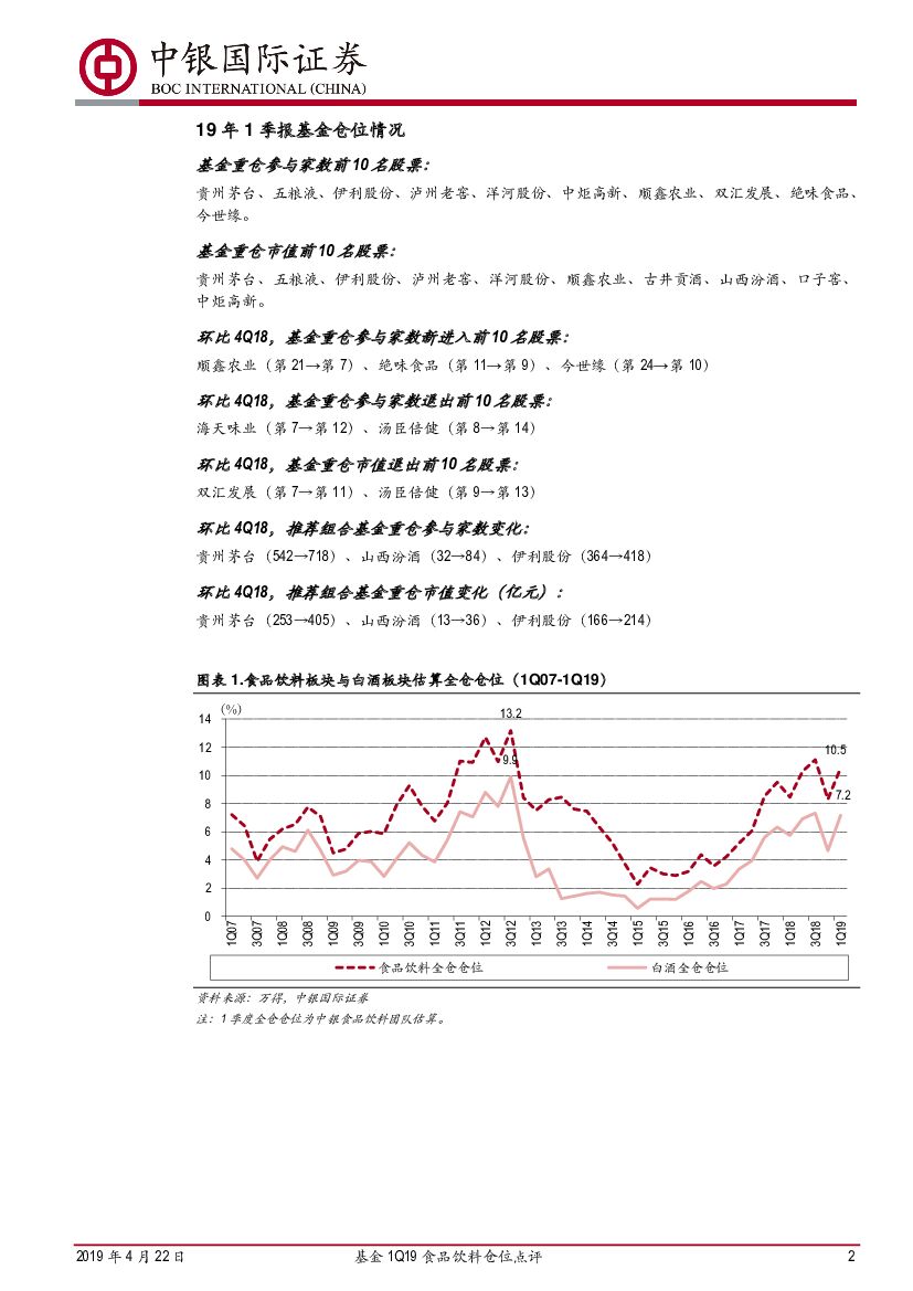 中银国际:基金1Q19食品饮料仓位点评:整体仓位上升,白酒增持明显.pdf