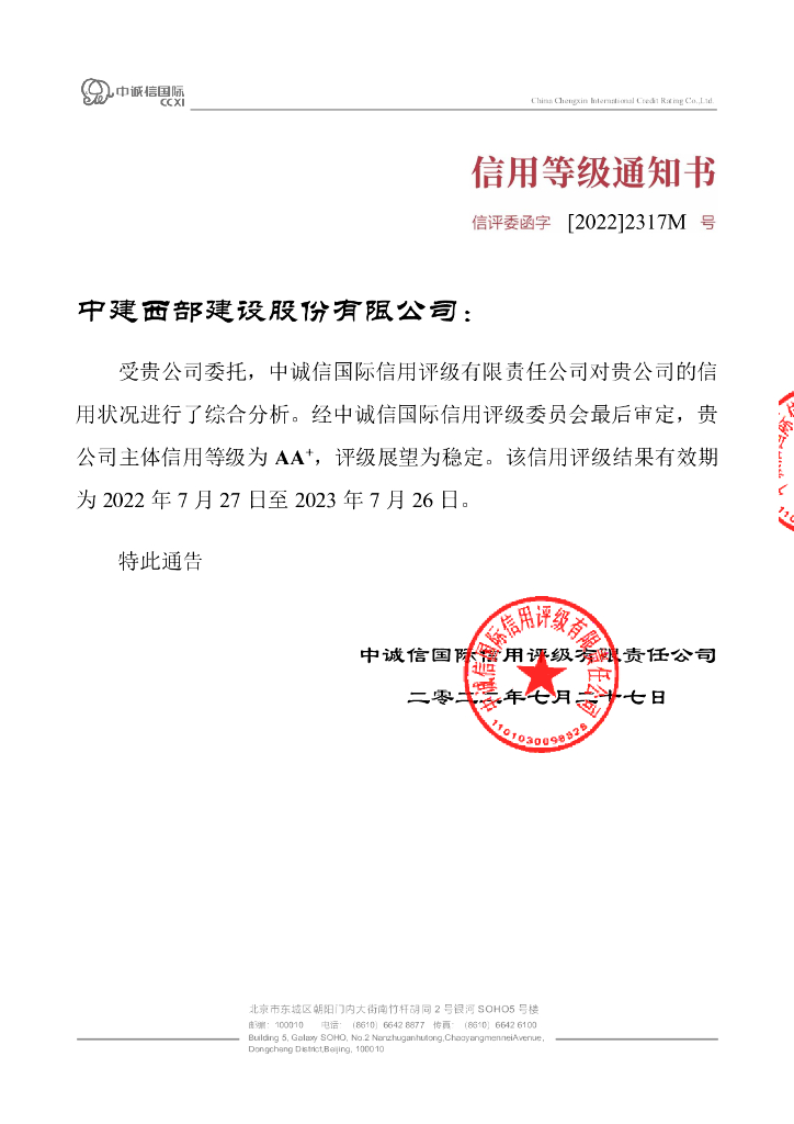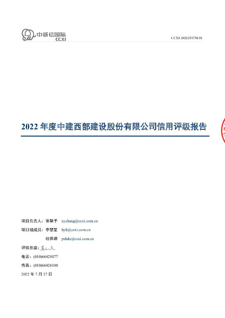 新世纪:2022年度中建西部建设股份有限公司信用评级报告.pdf
