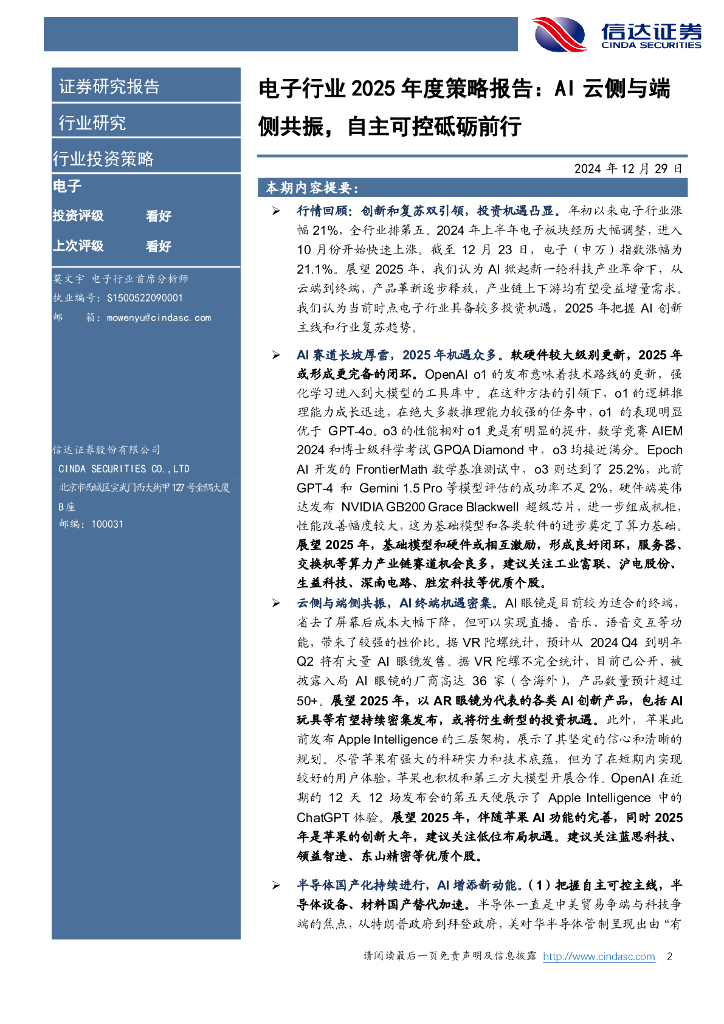 信达证券:电子行业2025年度策略报告:AI云侧与端侧共振,自主可控砥砺前行.pdf